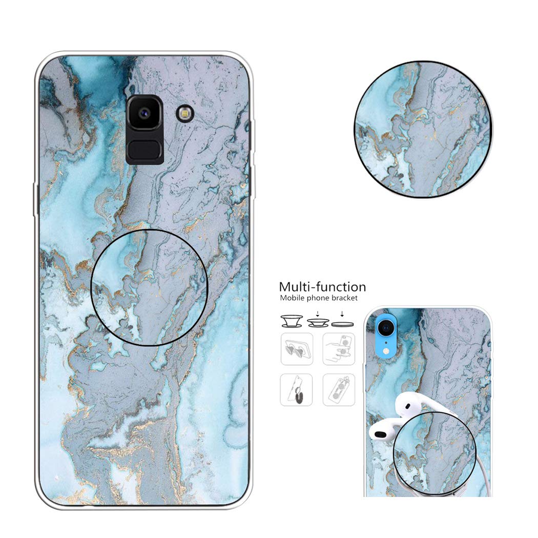 CoqueCase Coque pour Samsung A6 2018 Silicone Marbre Étui Samsung A6 2018 Antichoc Gel TPU avec Anneau Support Flexible Anti-Rayures Protection Bumper Cover Bleu Clair